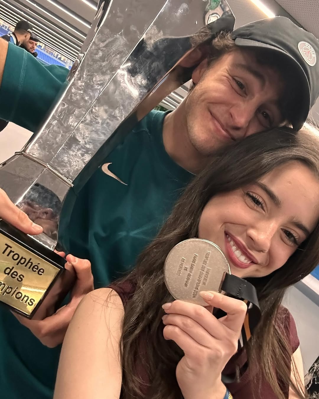 陪你捧杯🥰巴黎夺法国杯,内维斯与19岁女友甜蜜捧杯羡煞旁人 ejjerbqw 2025年05月25日 12:32 137 0 法国杯决赛,巴黎3-0击败兰斯,夺得法国杯冠军,包揽国内三冠(法甲+法国杯+法超杯)。若奥-内维斯随队夺冠,赛后手捧奖杯与19岁女友甜蜜合影,羡煞旁人。内维斯的女友名叫马达莱娜-阿拉贡(Madalena Aragão),现年19岁,是一名葡萄牙演员。此前内维斯夺得法超杯、夺得法甲、出席颁奖典礼,女友都陪伴在他身边与他一起庆祝。法超杯夺冠法甲夺冠UNFP颁奖典礼马达莱娜-阿拉贡近照↓ 标签: #巴黎 #法国